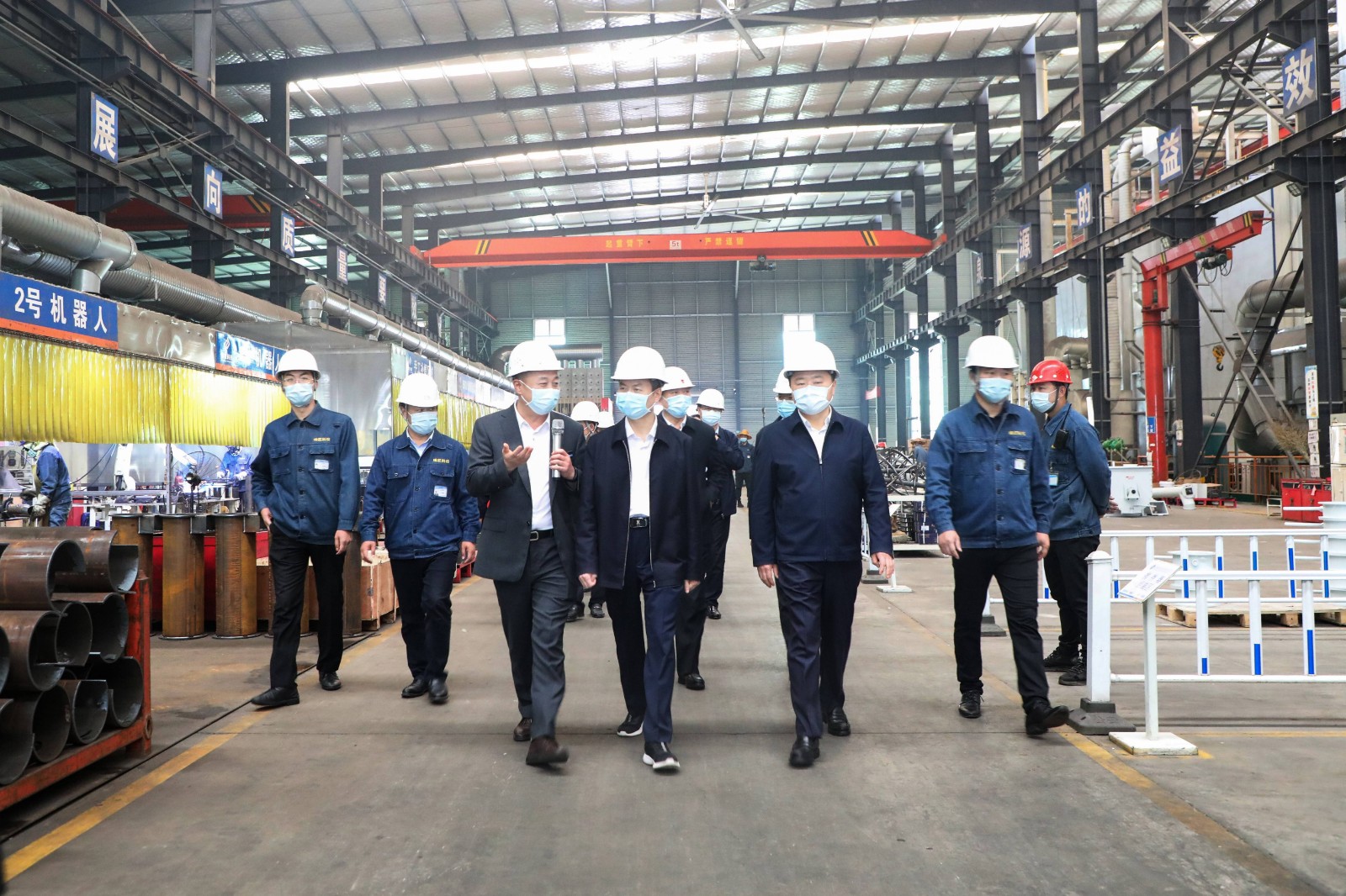 摆市长一行领导先后参观了精酿啤酒展厅、啤酒设备酿造生产车间、干混砂浆罐生产车间、控制中心、瑞士金马全自动喷涂生产线、无人值守洗车机生产车间、封头车间等。