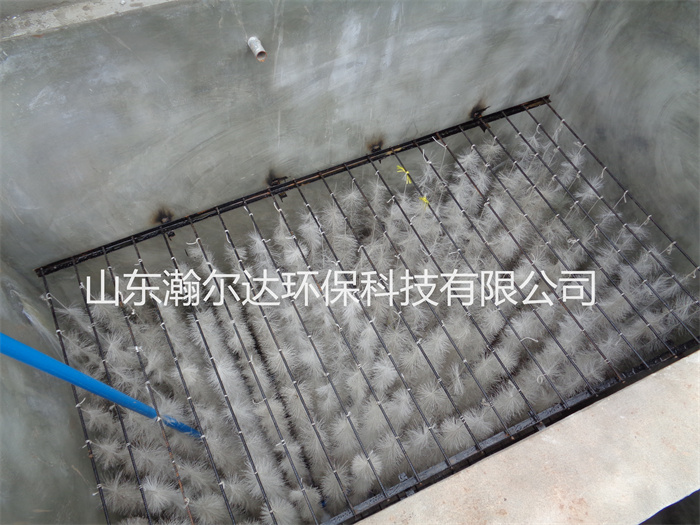 废水在此池中在酸化水解微生物的作用下,大分子有机杂质水解酸化成小分子物质,有利于接触氧化池中好氧菌的分解。二级接触氧化池内配装填料,该填料表面积大、使用寿命长、易挂膜、耐腐蚀,下部配置曝气器,并用ABS工程塑做成曝气系统,曝气系统的气源由专门配置的风机提供。